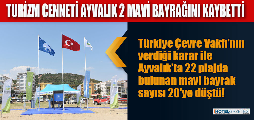 Engürü Sitesi’ndeki mavi bayrakların geçici olarak indirilmesi sonucunda; Ayvalık’ta 22 plajda bulunan mavi bayrak sayısı 20’ye, Balıkesir genelinde 46 plajda bulunan mavi bayrak sayısı ise 44’e düşmüş oldu.