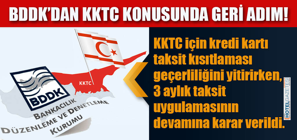 Bankacılık Düzenleme ve Denetleme Kurumu BDDK, yurt dışına yapılan turistik seyahatlerde Kredi kartı harcamalarına yapılan taksitleri yasaklamış, bu kararı Kuzey Kıbrıs Türk Cumhuriyeti KKTC’ye yapılan seyahat harcamaları için de geçerli olacağına karar vermişti.