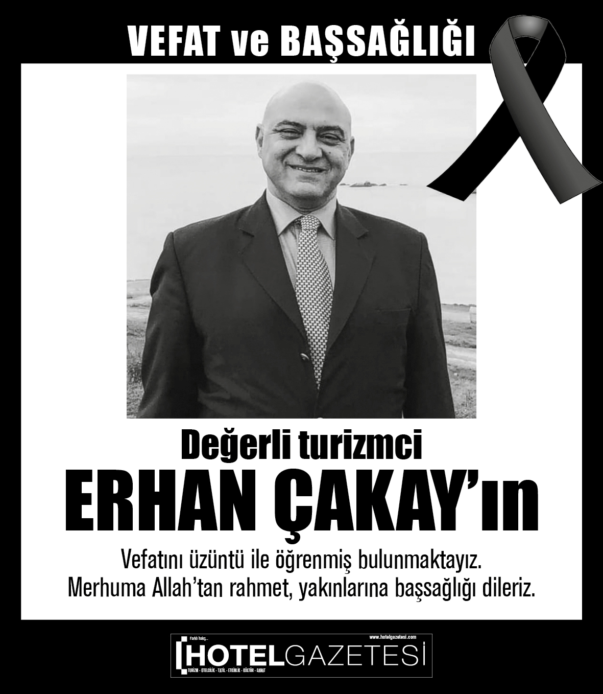Hotel Gazetesi ailesi olarak merhumun kederli ailesine baş sağlığı ve sabırlar dileriz. Turizm camiasının başı sağolsun.