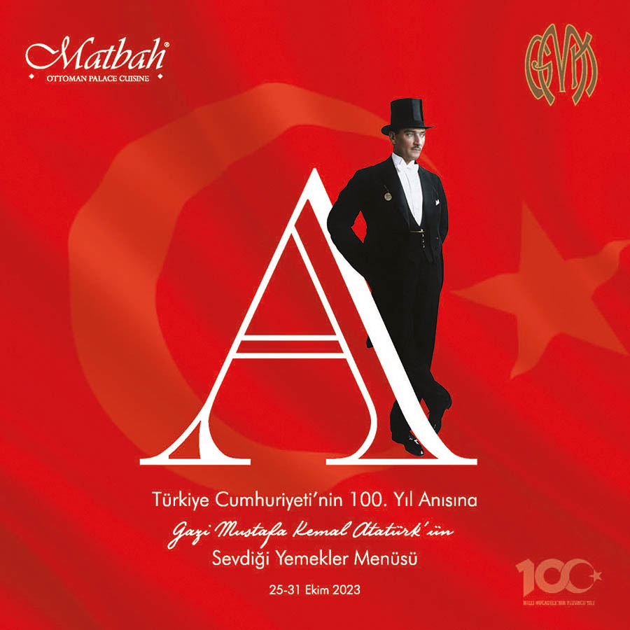 29 Ekim 1923’de kurulan Cumhuriyetimizin 100. Yılı, ülke çapında düzenlenen çeşitli etkinliklerle kutlanıyor. Michelin İstanbul Rehberi’nde yer alan restaurantlardan biri olan Matbah Restaurant, Cumhuriyetimizin 100’üncü yıldönümünde ülkemizin kurucusu, ulu önder Mustafa Kemal Atatürk’ü, ‘Atatürk’ün Sevdiği Yemekler Menüsü’yle anacak.