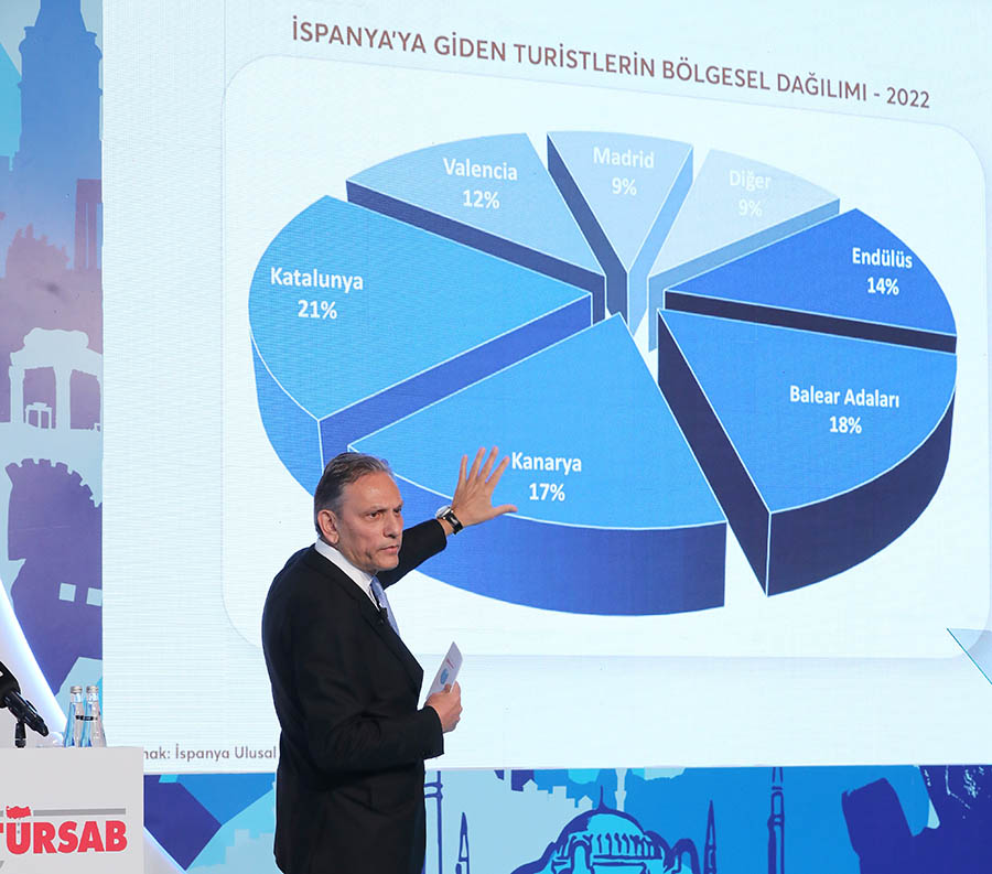 Ülkemize gelen turistin neredeyse yüzde 75’i altı aylık bölümde, yüzde 25’i diğer aylarda geliyor. Turizmde hedeflenenin aksine daha fazla yaz aylarına sıkışıyoruz. Hedefimiz turizmi mümkün olduğu kadar deniz, kum, güneş sezonunun dışında kalan aylara da taşımak olmalı.” dedi.