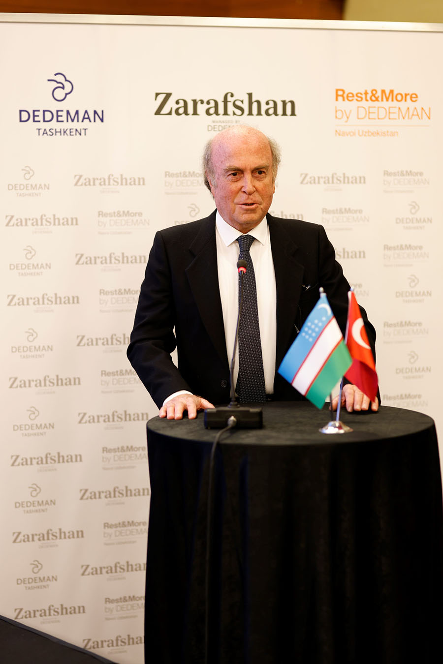 Zarafshan Golden Group Yönetim Kurulu Başkanı Ulugbek Fayziyev, “Öncelikle bu anlamlı imza töreninin milletlerimiz için çok kıymetli olan binlerce yıllık Nevruz Bayramına denk gelmesinden duyduğumuz mutluluğu belirtmek isterim. Türkiye ve Özbekistan iki kardeş ülkedir. Yıllar içinde birbirlerine daha da yakınlaşmış, iş birlikleri artmıştır. Bugün, turizm sektörü için çok güzel bir fırsat yakaladığımızı düşünüyor ve tüm Dedeman yönetimine teşekkürlerimi sunuyorum. 3 otel ile başlıyoruz ancak gelecek için daha büyük hedeflerimiz var. Türkiye ile kuracağımız bu iş birlikleri Özbekistan’ın da yüzünü değiştirecek” dedi.