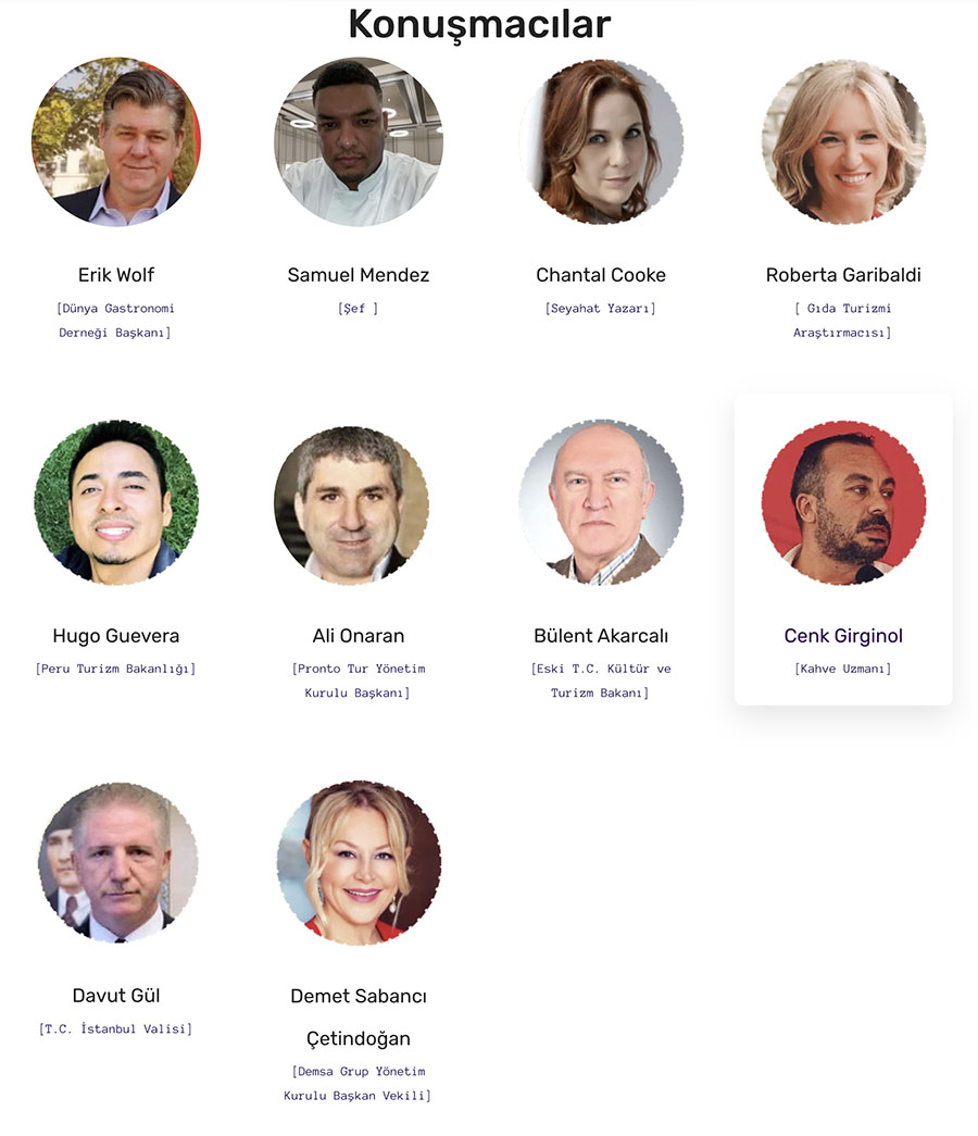 Sağlıklı beslenme oturumunda Demet Sabancı, İlhan Koçulu, Sema Soykan ve Vehbi Varlık konuşmacı olarak yer alacaklar. 2. gün oturumunda Sanat ve Gastronomi konusunda sanatçı Tamer Levent, Eski Turizm Bakanı Bülent Akarcalı ve oyuncu Hakan Meriçliler ile GASTROSHOW devam edecek.