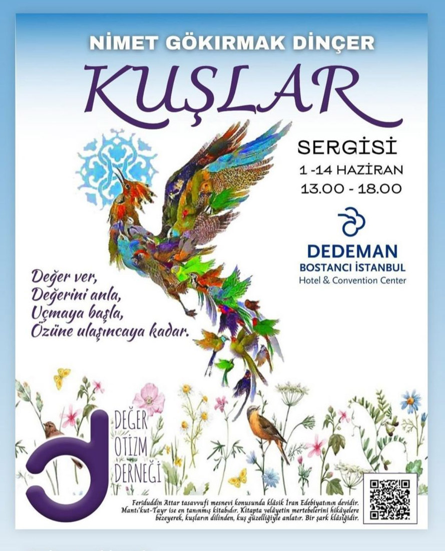 Sergi boyunca ziyaretçiler, Nimet Gökırmak Dinçer’in birbirinden farklı ve özgün eserlerini görme fırsatı bulacaklar. Sanatçı, Feridüddin Attar’ın “Mantıku’t-Tayr” (Kuşların Diliyle) kitabından ilham alarak hazırladığı bu sergiyle doğanın güzelliklerini ve çeşitliliğini sanatseverlere sunuyor.