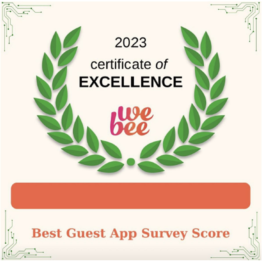 En İyi Konuk Uygulaması Anket Puanı Ödülü WeBee mobil uygulaması aracılığıyla toplanan en yüksek ortalama konuk memnuniyeti puanlarına sahip otellere verilen bu ödül, WeBee platformunun konuk geri bildirimini kolaylaştırma ve sürekli iyileştirmeyi teşvik etme gücünü vurgulamaktadır.