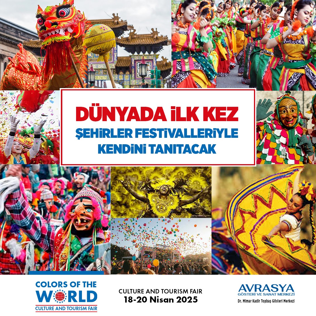 18-20 Nisan 2025 tarihleri arasında İstanbul, dünyada merak uyandıran şehirlerin renkli festivallerine ev sahipliği yapacak. Dr. Mimar Kadir Topbaş Gösteri Merkezi’nde gerçekleşecek olan “Colors Of The World” fuarında, dünya şehirleri kendi kültürlerini festivalleriyle tanıtacak. Ziyaretçilere görsel bir şölen yaşatacak olan bu etkinlik, sıra dışı bir fuar deneyimini ziyaretçilerine sunacak.