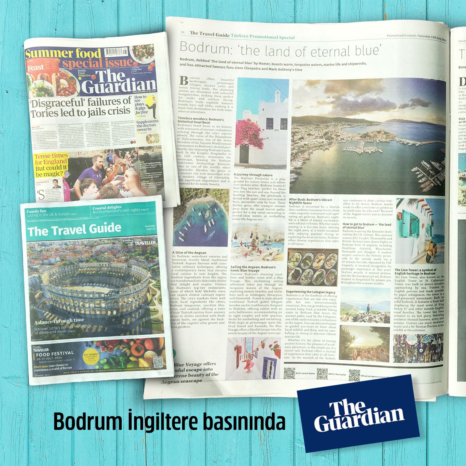 Dünyanın en saygın yayın organlarından ve İngiltere gazeteciliğinin köşe taşı olan The Guardian, günlük yaklaşık 3 milyon baskıyla büyük kitlelere ulaşabilmektedir. The Guardian’ın çıkardığı bu özel ekte yer alan “Bodrum: Sonsuz Maviliklerin Ülkesi”, Bodrum Belediyesi, Bodrum Ticaret Odası, TAV Milas-Bodrum Havalimanı ve Bodrum Otelciler Derneği’nin işbirliğiyle hazırlandı.
