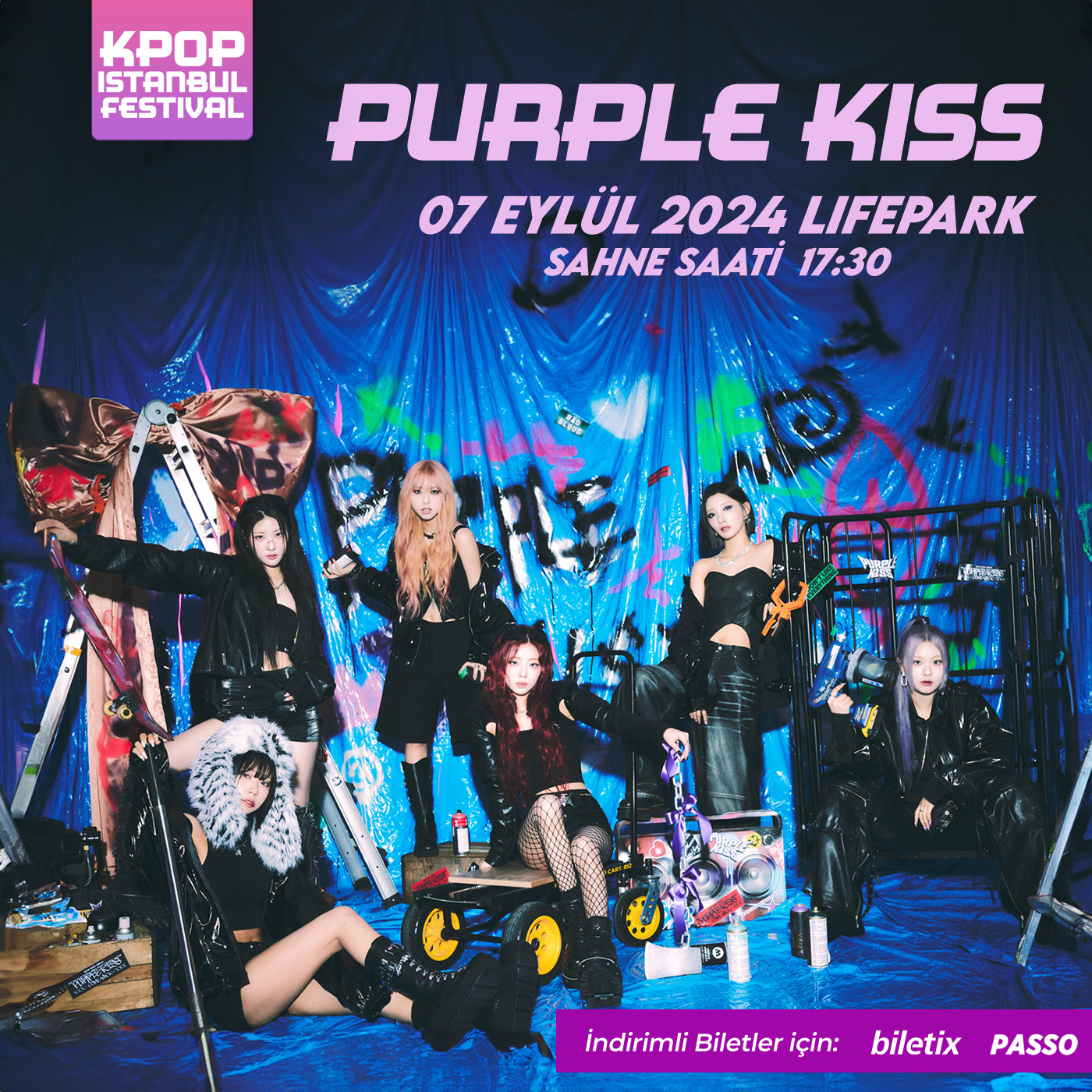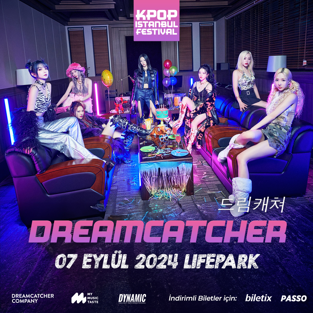 K-Pop tutkunları için büyük gün yaklaşıyor! 7 Eylül Cumartesi günü, İstanbul’un en prestijli festival alanlarından biri olan Lifepark, K-Pop severler için unutulmaz bir etkinliğe ev sahipliği yapacak. Dünyaca ünlü K-Pop grupları DreamCatcher ve PurpleKiss, enerjik sahne performanslarıyla izleyicilere büyüleyici anlar yaşatacak. K-Pop’un büyüleyici dünyasına adım atmak ve unutulmaz anların keyfini çıkarmak için bu fırsatı kaçırmayın!