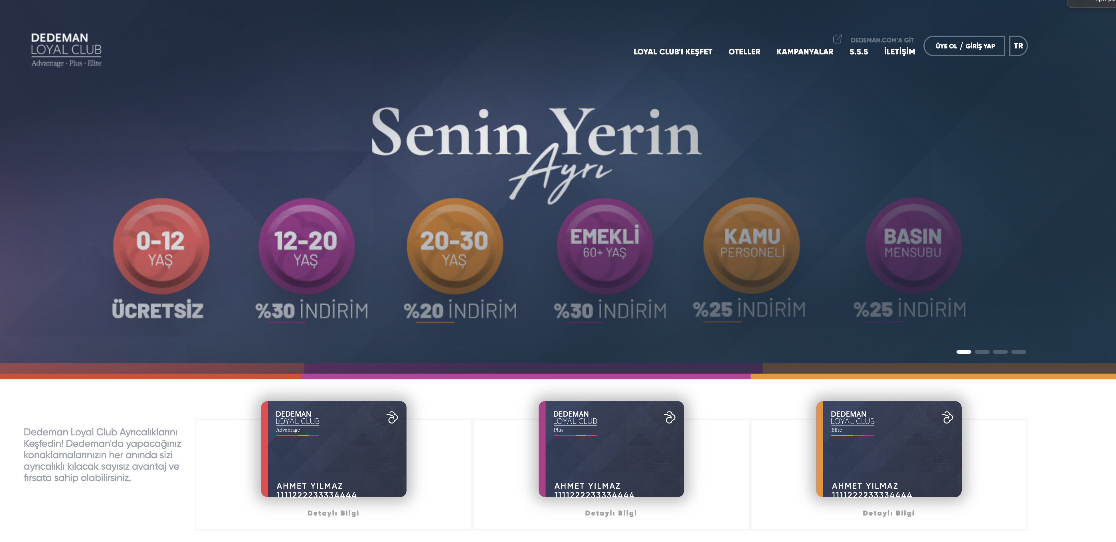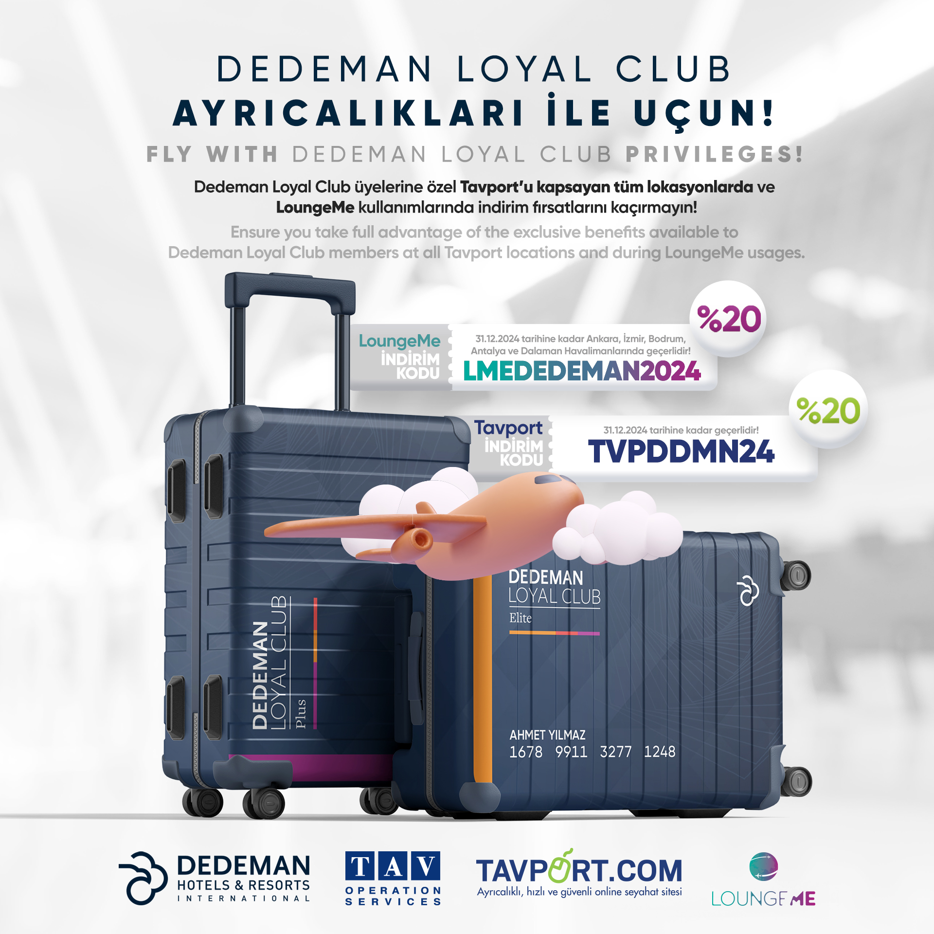 “Dünyanın dört bir yanından misafirlerini 58 yıldır kusursuz bir misafirperverlik anlayışıyla ağırlayan Dedeman Hotels & Resorts International, Loyal Club üyelerine sağladığı avantajlarla misafirlerini ayrıcalıklı bir dünyaya davet ediyor. Kamu çalışanları, gazeteciler, emekliler ve genç misafirler için sunduğu özel indirimlerle her kesime hitap eden ve “herkesin Dedeman’ı olma” hedefleri yolunda büyük bir adım atan Dedeman, kaliteli konaklama deneyimini cazip fiyatlarla sunuyor. 0-12 yaş arası çocukların ücretsiz konaklama imkanına sahip olduğu Dedeman otellerinde, her yaş grubuna hitap eden avantajlar mevcut.”