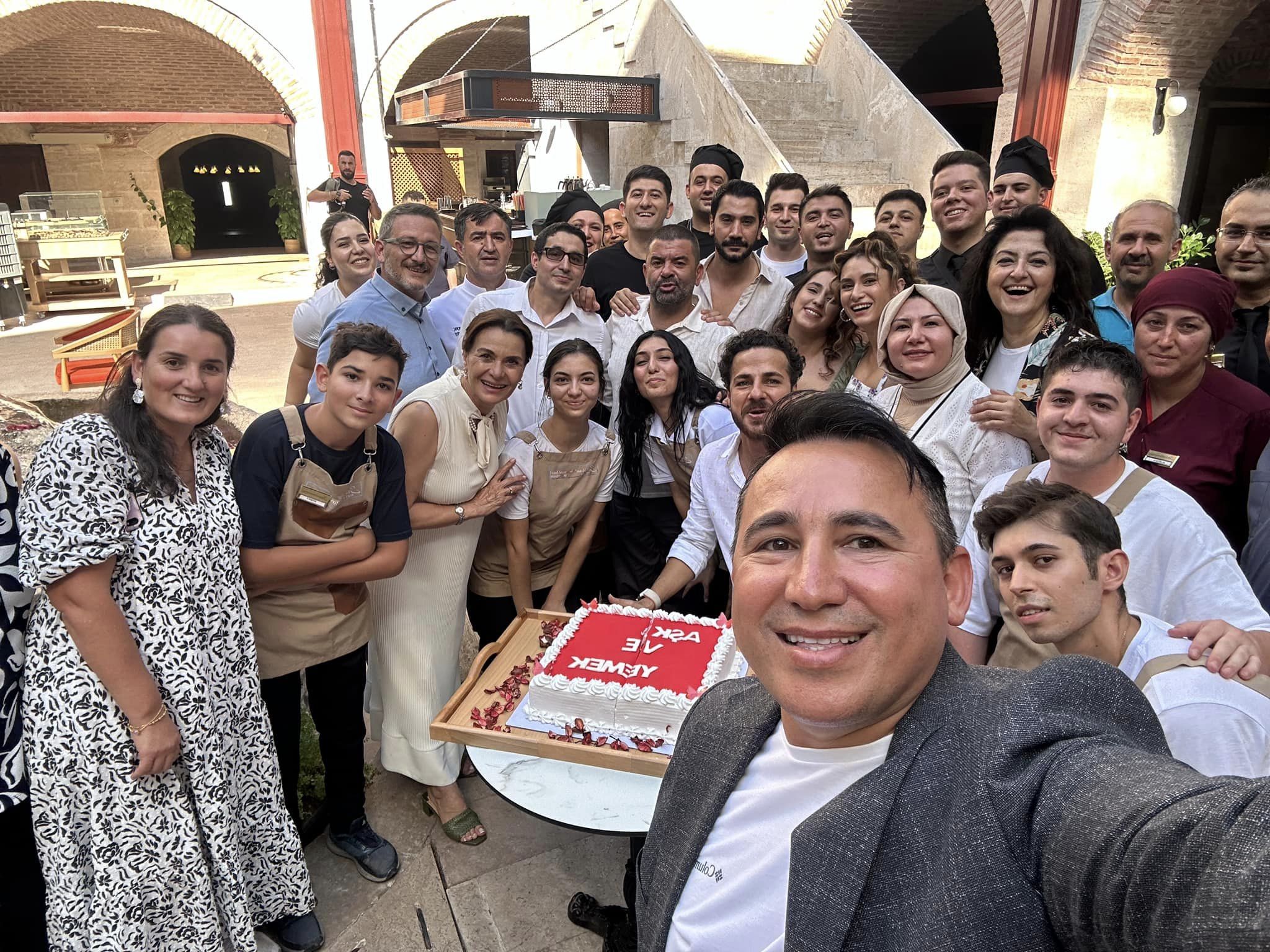 “Aşk ve Yemek” filminin çekimleri sırasında Silk Road Museum Hotel, sadece bir film mekânı olmanın ötesinde, özel etkinliklere de ev sahipliği yaptı. Filmin çekimlerinin tamamlanmasının ardından otelde gerçekleştirilen kutlama, filmin ruhunu yansıtan sıcak ve samimi bir atmosferde yapıldı. Murtaza Kalender, film ekibiyle birlikte özel olarak hazırlanan pastayı keserek, bu anı ölümsüzleştirdi.