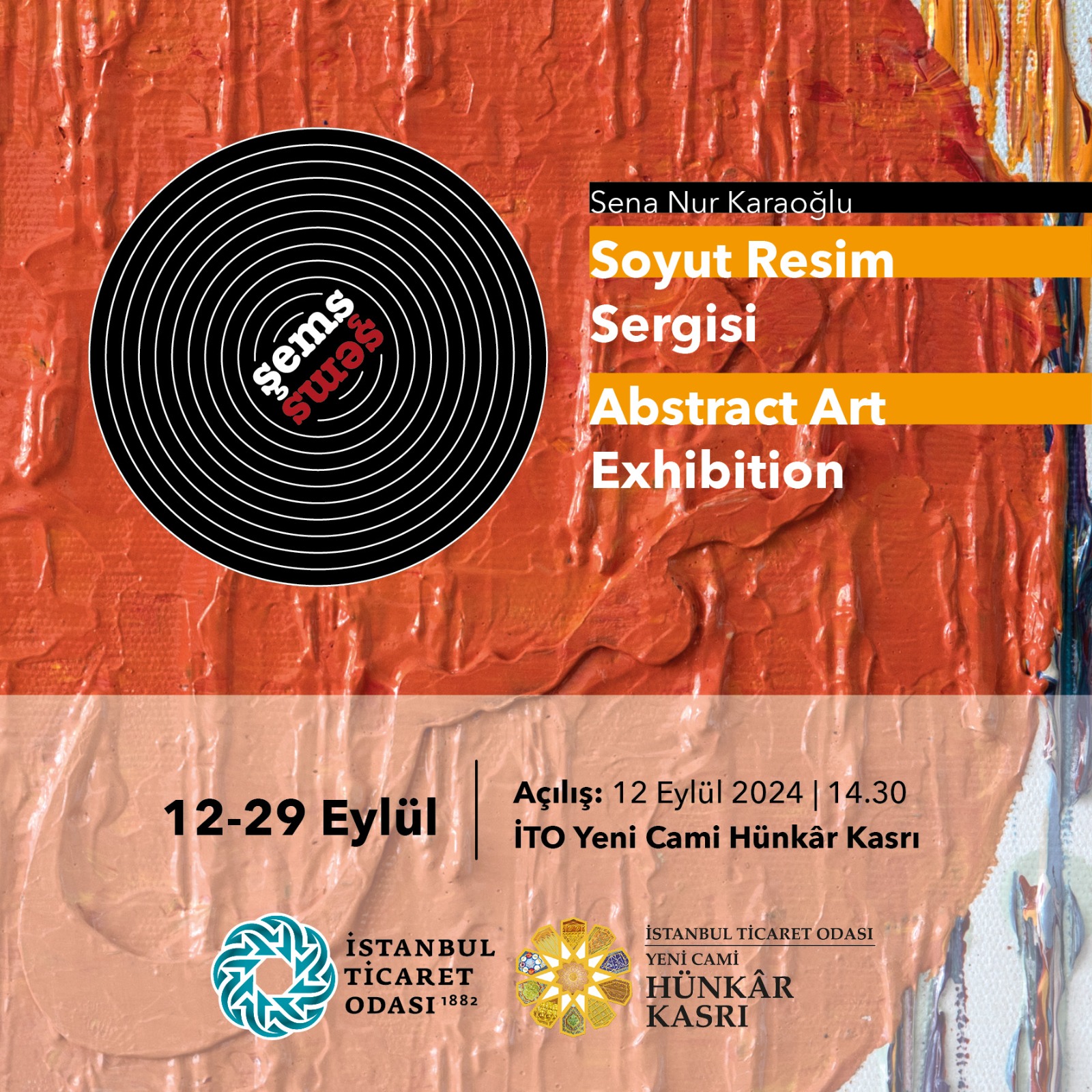 İTO Yeni Cami Hünkâr Kasrı, 12 Eylül 2024 tarihinde genç sanatçı Sena Nur Karaoğlu’nun kişisel sergisi “Şems” ile sanatseverleri büyülü bir yolculuğa davet ediyor.
