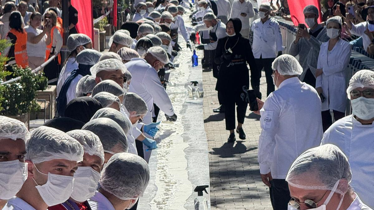 Ustalar, 101 metre hedefiyle başladıkları çalışmada, 114 metre 70 santimetre uzunluğunda bir lokum üreterek Guinness Dünya Rekorları’na adını yazdırdı. Guinness Türkiye Hakemi Şeyma Subaşı Gemici, denemenin belirlenen standartlara uygun olduğunu ve resmi olarak tescillendiğini açıkladı.