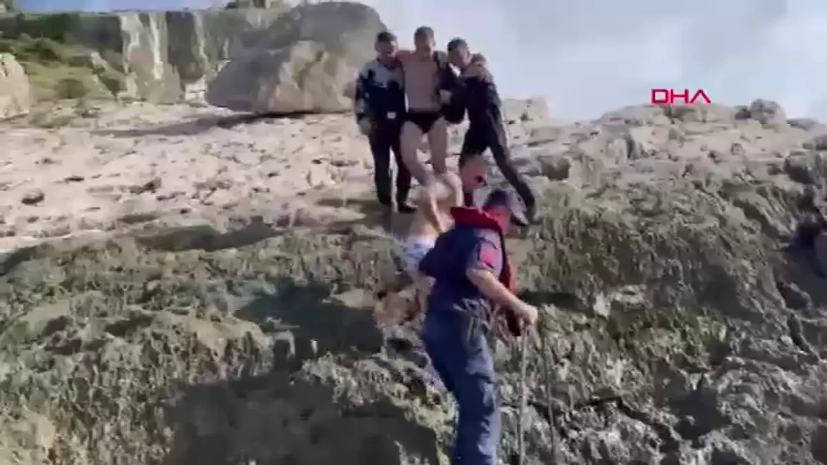 Olay yerine, Sahil Güvenlik Batı Karadeniz Grup Komutanlığına bağlı dalgıç ekibi yönlendirildi. Ekip, botla kayalıklara ulaşarak yaralı turisti arkadaşının yanından alıp Amasra limanına taşıdı.