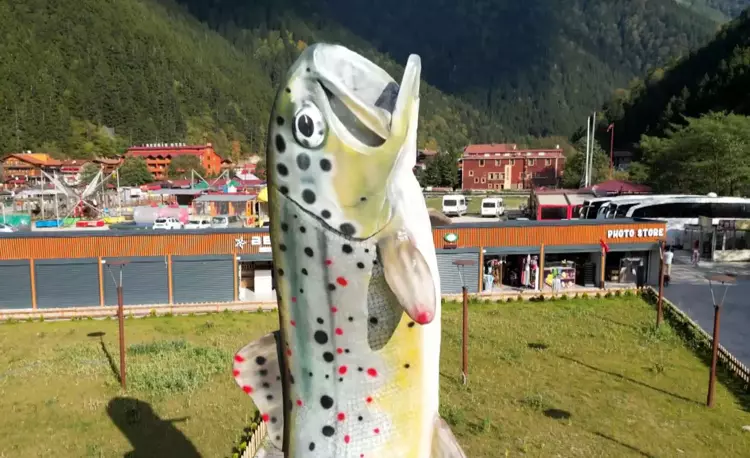 Trabzon’un gözde turizm merkezi Uzungöl’de, kırmızı benekli alabalığın fiber heykeli göl kenarına yerleştirildi. 7 metre uzunluğundaki heykel, hem yerli hem de yabancı turistlerin ilgisini çekmeyi başardı. Uzungöl Turizmciler Derneği’nden Mehmet İnan, alabalığa duyulan minnettarlığı ifade etmek ve bu hikayeyi gelecek nesillere aktarmak amacıyla böyle bir heykelin yapılmasının hedeflendiğini belirtti.