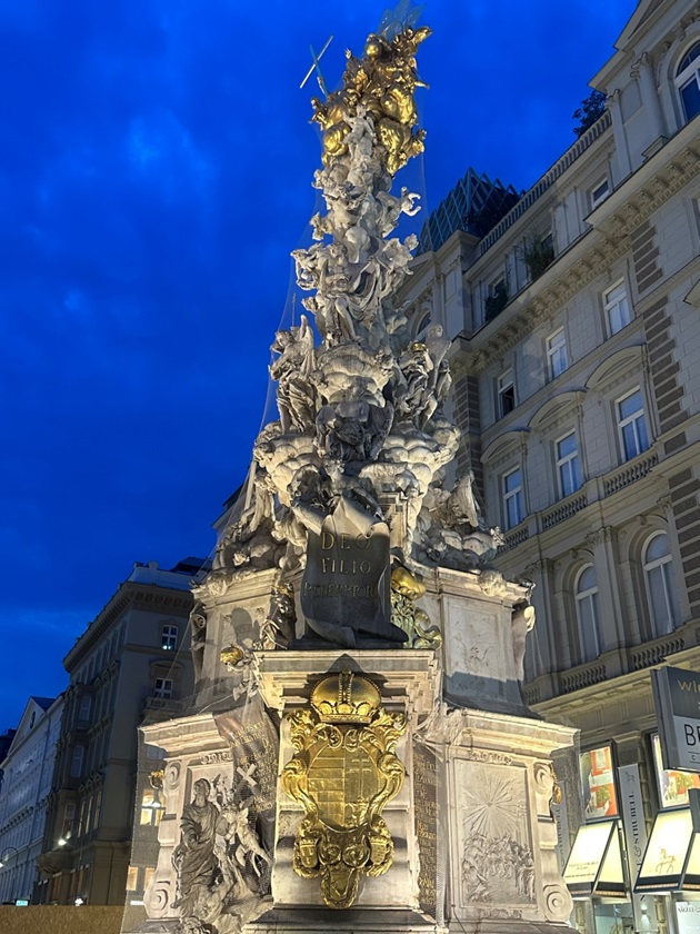 Aziz Stephan Katedrali’ne çok yakın olan, Viyana’nın en ünlü caddelerinden birisi olan Graben bölgesi üzerindeki Veba Sütunu, 1679’da Viyana’da görülen veba salgınından sonra yapılmış. 21 metre yüksekliğindeki bu sütun, buradaki en ünlü sanat eserlerinden biri olarak görülüyor. Üzerinde çok detaylı kabartma ve heykeller , melek figürleri bulunmakta. Veba Sütunu, uzun inşaat süresi, tasarımın çok sık değişmesi, çok sayıda heykeltraşın dahil olduğu bu kadar karmaşadan sonra bence harika görünen bir eser ortaya çıkmış. Bir çok turist tarafından ziyaret ediliyor ve fotoğraflarda yerini alıyor. Bir meydanın ortasında olduğu için serbestçe geziliyor.