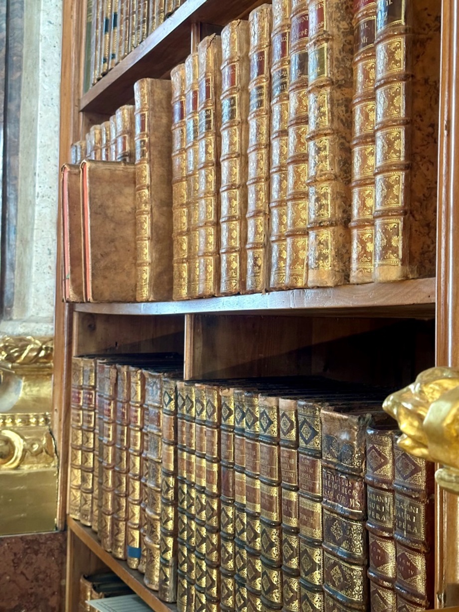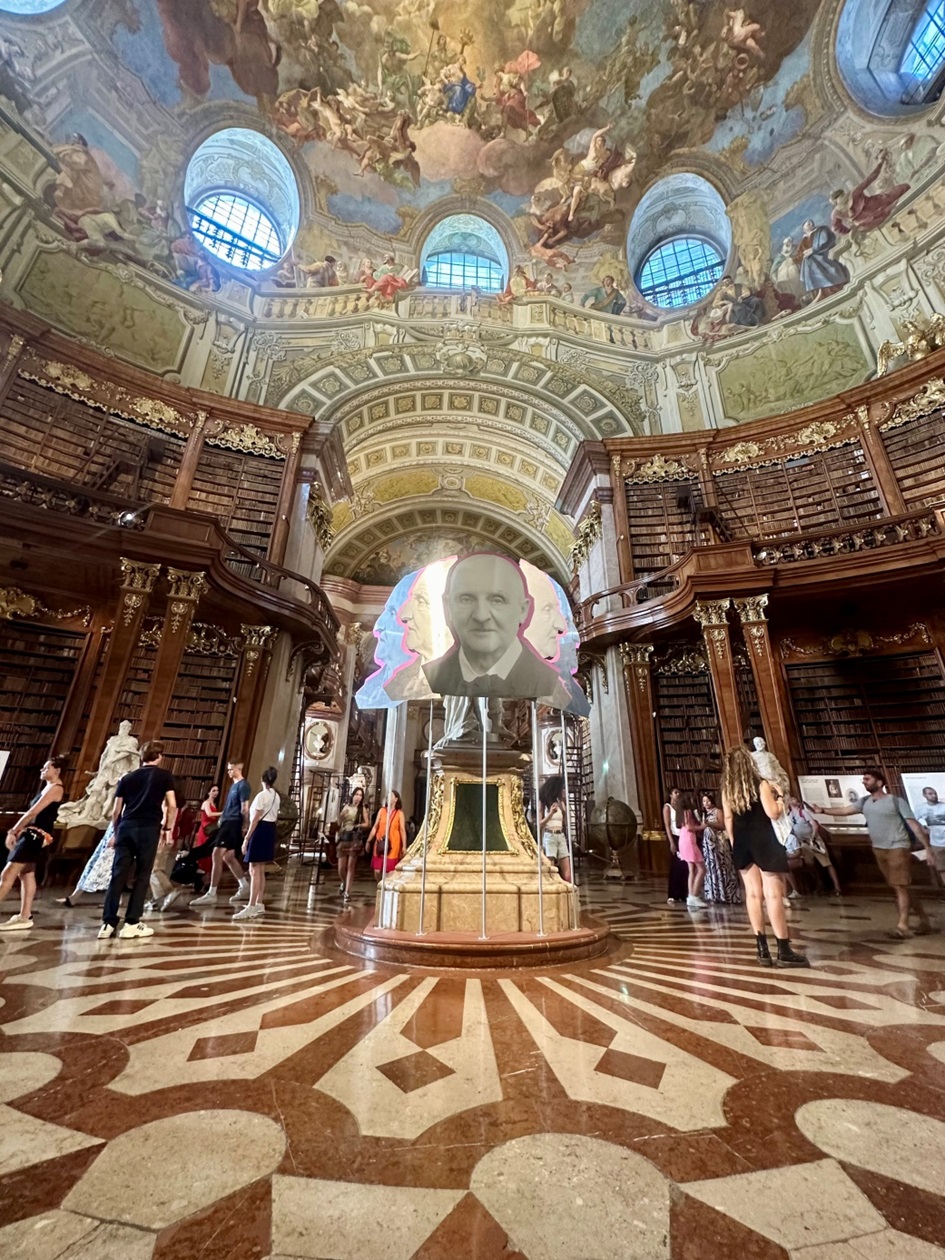 Kütüphanenin tasarımı 1680 yılına dayanmakta ancak Osmanlı ordusunun kuşatmasıyla inşaatı ertelenmiş, bu erteleme ile birlikte daha kapsamlı bir planla yapılmaya başlanmış. Avusturya Barok dönemi karakteristik özelliklerini yansıtan eşsiz bir mimariye ve estetik bir görüntüye sahip. Mimari kusursuzluğunun yanı sıra içinde çok sayıda eser bulunmakta. İçeri girer girmez kitap kokusunu hissediyorsunuz. 75 milyon eserin bulunduğu devasa bir kütüphane burası. Ülkemizde de böyle bir kütüphane olmasını isterdim. Özellikle kitapseverlerin Viyana’da mutlaka görmesi gereken yerlerden birisi burası. İç mekandaki tavanlar inanılmaz güzel fresklerle dolu, sadece mimari yapısıyla bile görenleri kendisine hayran bırakacak özellikte bir yapı.