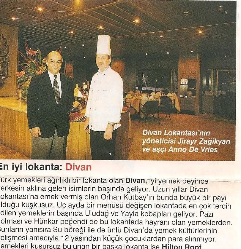 Mutfak bölümünde ise Aybek Şurdum, Yılmaz Kalaycı, Ayhan Matbu gibi isimlerden oluşan harika bir ekip bulunmaktaydı. Otelin Aşçıbaşısı Anno de Vries ise süper bir şefti. Anno ile daha sonraki yıllarda, ben Hilton’dan emekli olup Maitre D’hotel olarak Divan Otelinde çalışmaya başladığım dönemde tekrar çalıştım.