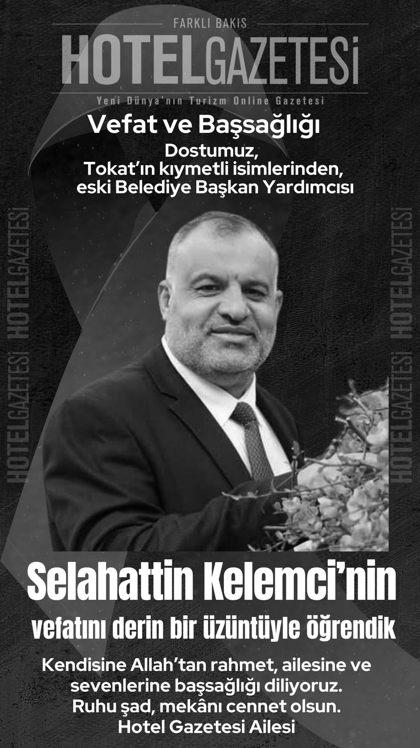 Selahattin Kelemci’nin güler yüzü, enerjisi ve etrafına yaydığı iyilik, Tokat halkının hafızasında daima canlı kalacak. Hotel Gazetesi olarak, merhuma Allah’tan rahmet; ailesine, sevenlerine ve tüm Tokat halkına başsağlığı diliyoruz. Ruhu şad, mekânı cennet olsun.