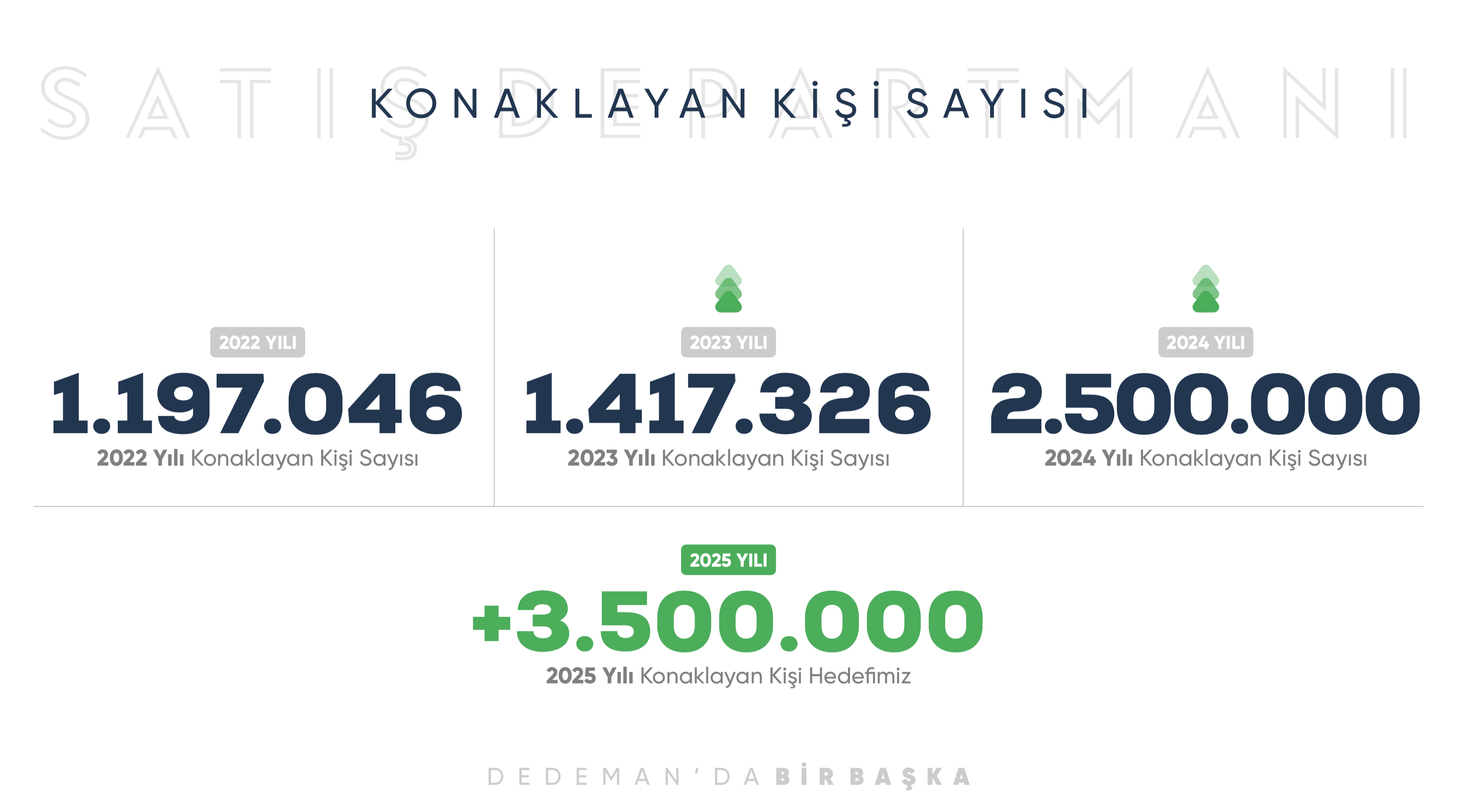 Büyüme stratejisi kapsamında yatırımlarını sadece otelle sınırlandırmayan Dedeman, 2025 Nisan ayında tanıtmayı hedeflediği Dedeman Village projesi ile hizmet yelpazesine yepyeni bir alan eklemeye hazırlanıyor. Dedeman Village’ın büyüme stratejilerinin çok önemli bir parçası olacağına dikkat çeken Demiray; “Bu proje ile sağlıklı yaş alma merkezleri oluşturmayı hedefliyoruz. Kreşten okula, sosyal alanlardan ekolojik kasabalara kadar geniş bir yelpaze olacak. Türkiye genelinde erişilebilir fiyatlarla herkesin sahip olabileceği villalar yapacağız. Fiyat skalası erişilebilir olacak şekilde belirlenen projeyle, her kesimden insan kaliteli ve doğanın içinde yaşam alanlarına sahip olabilecek” dedi.
