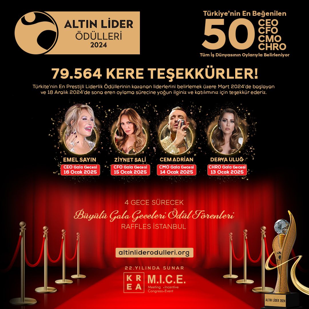 16 Ocak’a kadar sürecek büyülü gala gecelerinde, Türkiye’nin En Beğenilen 50 CMO’su, CFO’su ve CEO’su ödüllerini alacak. Bu ödül töreni, iş dünyasındaki başarının ve liderliğin en saygın göstergelerinden biri olarak kabul ediliyor.