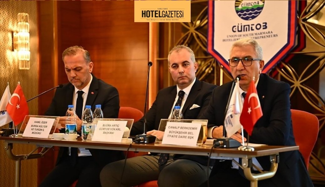 GÜMTOB – Güney Marmara Turistik Otelciler ve İşletmeciler Birliği, turizm tesislerinde yangın güvenliği ve alınması gereken önlemler konusunda sektör temsilcilerini bilgilendirmek amacıyla “Tesislerde Yangın Yönetmeliği ve Önlemleri” konulu bir toplantı düzenledi. Mövenpick Hotel’de gerçekleşen toplantıya GÜMTOB üye tesis yöneticileri, Bursa Büyükşehir Belediyesi İtfaiye Daire Başkanı Canalp Berkdemir, Bursa İl Kültür ve Turizm Müdürü Kâmil Özer, İSG Uzmanı İnşaat Mühendisi Erhan Çetin ve Akpınar Danışmanlık yetkilisi Sadık Öztürk konuşmacı olarak katıldı.
