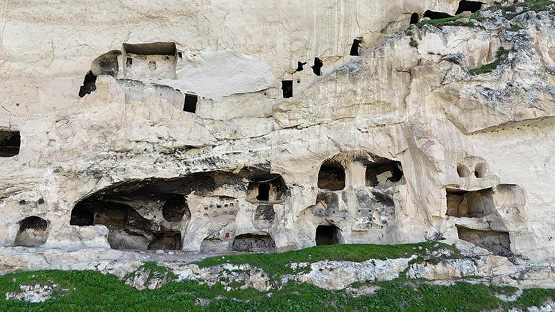 İn deliklerinin ilçenin en kıymetli tarihi ve turistik değerlerinden biri olduğunu vurgulayan Kaymakam Cüneyt Zor, “İn delikleri, Derviş Hücreleri olarak bilinir ve Urartulardan kalma kıymetli turistik yapılardandır. Bu tarihi alanlarda bir kral odası da bulunmaktadır. Zamanla oluşan tahribatlar nedeniyle yenileme çalışmalarına ihtiyaç duyulmaktadır. Kültür ve Turizm Bakanlığımız ile Valimizin rehberliğinde düzenlemeleri tamamlayacağız. İlçemiz köklü bir geçmişe sahip ve asma köprü projemiz ile kitap kafe inşasını tamamlayarak turistleri ağırlamayı hedefliyoruz. Asma köprümüz 40 metre uzunluğunda ve 2 metre genişliğindedir. 92 metrekare kapalı alanı olan kafeteryamız sayesinde kadınlarımız, evlerinde ürettikleri ürünleri burada satışa sunarak ekonomik katkı sağlayabilecekler.” ifadelerini kullandı.
