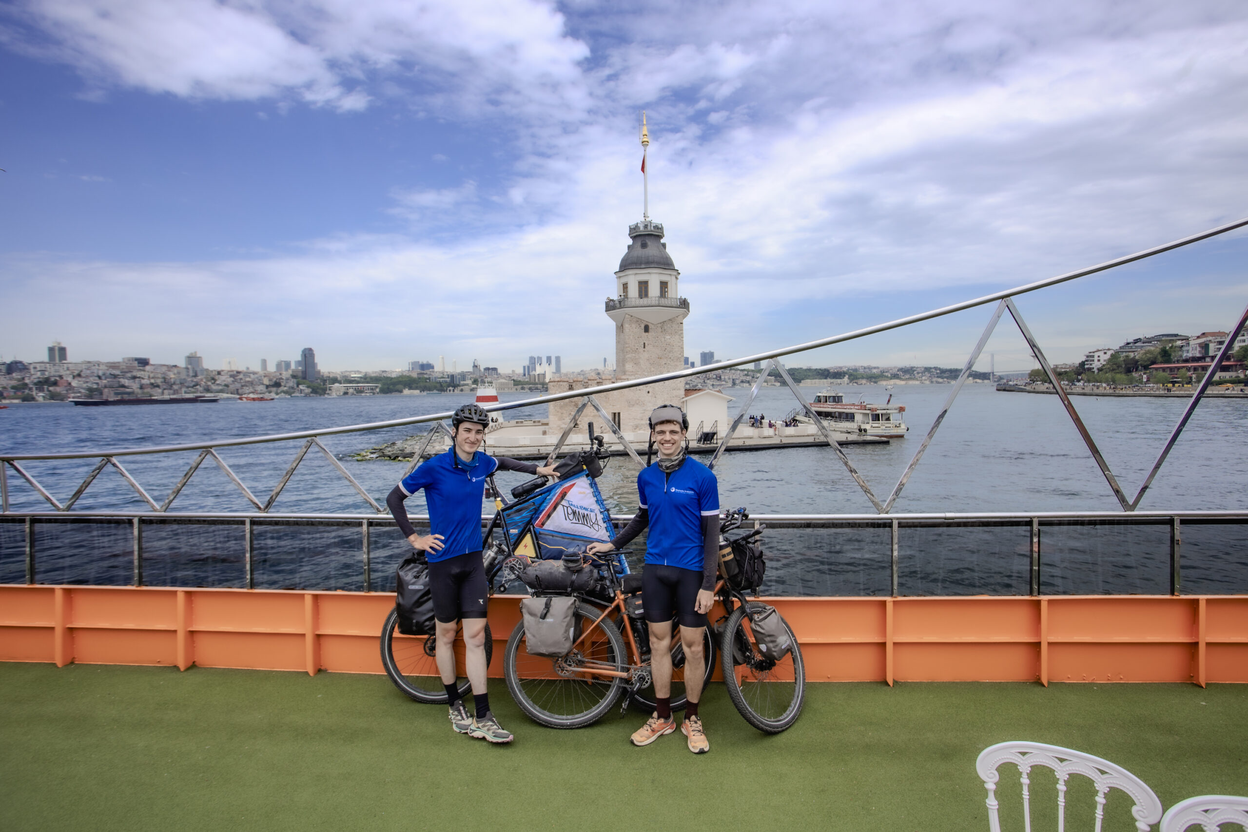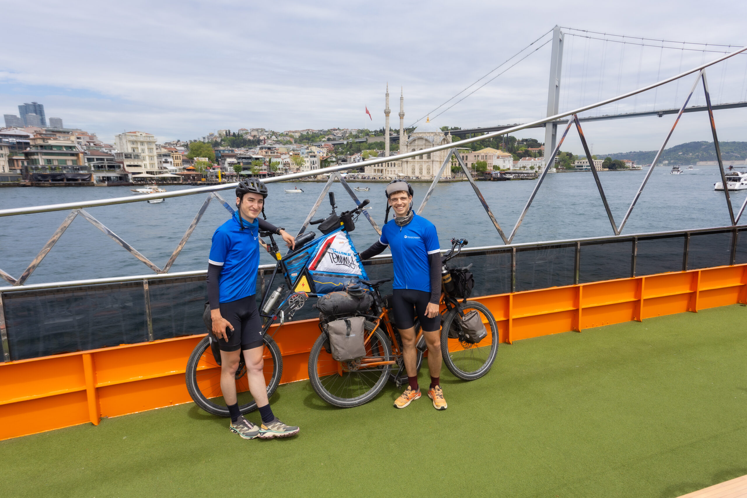 İkili, Avrupa’dan Asya’ya geçişi sembolik bir an olarak planlamıştı. Ancak Boğaziçi Köprüsü’nden bisikletle geçme izinleri alınamayınca, alternatif bir çözüm devreye girdi. Turna Tur’un “yüzen köprü” temalı teknesiyle Boğaz’dan geçen Tommaso ve Jakob, hem kıta değişimini tamamladı hem de tarihi İstanbul siluetini denizden gözlemleme fırsatı yakaladı.