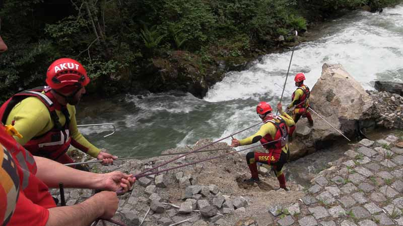 Emre Aygün, “Dün öğle saatlerinde Demirkapı yoluna doğru bisikletimle giderken, elimi yüzümü yıkamak amacıyla kısa bir mola verdim. Bu esnada yol kenarında park etmiş beyaz bir aracın kapısının açık olduğunu ve derenin kenarına doğru giden birilerini gördüm. Merakla araca yaklaştığımda, kaybolan çocuğun anne ve babasının büyük bir panik içinde olduğunu fark ettim. Dereye çocuğun düştüğünü söylediler. Arapça bildiğim için durumu hemen anladım ve onları takip etmeye başladım. Uzungöl Jandarma Karakolu’na ulaştım. Burada komutanlarla birlikte hızla yukarı çıkıp arama çalışmalarına başladık. Ardından profesyonel ekiplerin gelmesini bekledik. İlkbahar döneminde, derenin debisinin yüksek olduğu bu zaman diliminde suya girmek son derece tehlikeli. Aile, su içmek için durduklarını ifade etti. Baba, çocuğun peşinden dereye girerken şans eseri aşağıdaki bir kayaya tutunarak kendini kurtarmayı başardı. Fakat çocuğun nerelere gittiğini göremedi” şeklinde açıklamalarda bulundu. Arama çalışmaları, Jandarma, JÖAK, JAK, AFAD, AKUT, ANDA, İtfaiye, UMKE ekipleri ve gönüllü vatandaşların katkısıyla yürütülürken, Ankara ve çevre illerden de destek ekiplerinin katıldığı aktarıldı.