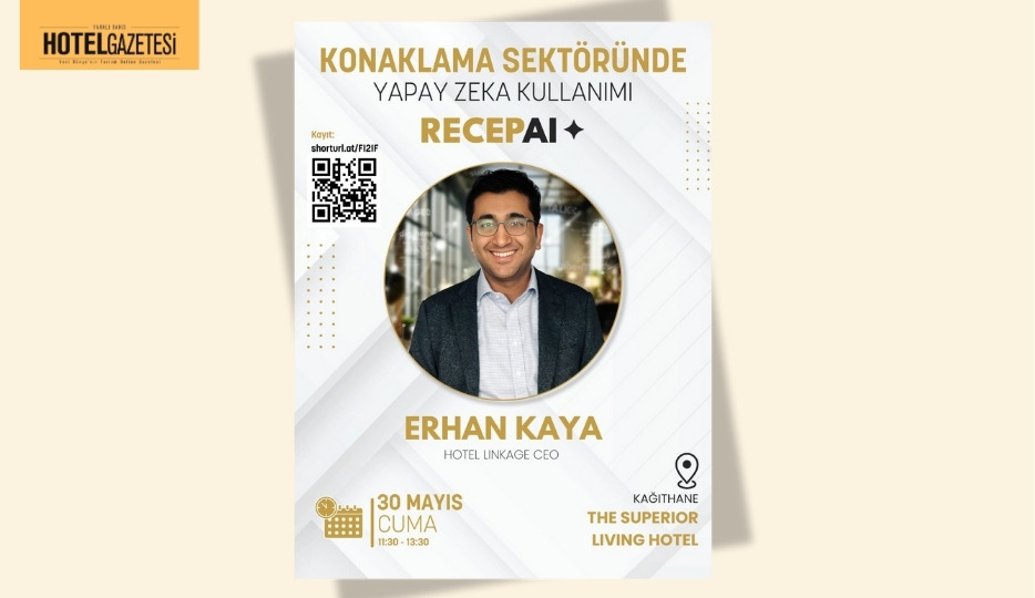 Etkinlikte, “RecepAI” projesinin detaylarını katılımcılarla paylaşacak olan Hotel Linkage CEO’su Erhan Kaya, konaklama sektöründe yapay zekanın sunduğu olanakları ve otellerin dijital dönüşüm sürecinde bu teknolojiden nasıl yararlanabileceklerini anlatacak. Kaya, geliştirdikleri yapay zeka tabanlı çözümle otellerin operasyonel verimliliğini artırmayı hedeflediklerini belirtiyor.