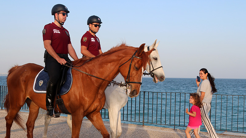 Antalya’nın turizm sezonunun başlamasıyla sahillerde güvenliği sağlamak amacıyla devriye yapan atlı polis timleri, özellikle Konyaaltı Sahili’nde yoğun bir şekilde görev almaktadır. Bu sahil üzerindeki atlı polisler, asayiş olaylarına etkin bir biçimde müdahale ederken, aynı zamanda vatandaşların ilgisini de çekiyor. Sahilde yer alan atlar arasında, anne ve kız olarak bilinen ‘Babilon’ ile ‘Filika’ hemen dikkati çekiyor. Atlı Polis Birliği’ne bağlı 12 at, her gün yaklaşık bir saatlik eğitim alarak profesyonel binicileri eşliğinde göreve hazırlanıyor. Kalabalık etkinlikler, konserler ve bayram günlerinde aktif rol üstlenen atlı polislerin, atların güçlü sezgileri sayesinde olaylara daha hızlı tepki verme kapasitesine sahip olduğu ifade ediliyor. Antalya emniyetinin özel timi, hem yerli hem de yabancı turistler için güvenli ve huzurlu bir ortam oluşturmayı amaçlamaktadır.