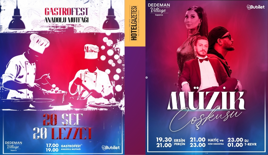 Sapanca, 23 Ağustos 2025’te gastronomi ve müzik tutkunlarını aynı çatı altında buluşturacak dev bir etkinliğe hazırlanıyor. Dedeman Village Sapanca ev sahipliğinde gerçekleşecek Yaz Festivali, Anadolu Profesyonel Aşçılar Derneği (ANPROŞEF) iş birliğiyle “20 Şef, 20 Lezzet – GastroFest Anadolu Mutfağı” temasıyla düzenleniyor. Etkinlikte birbirinden ünlü şefler, yöresel tatları misafirlerle buluştururken, sahnede ise ünlü sanatçılar ve DJ performansları geceyi renklendirecek.