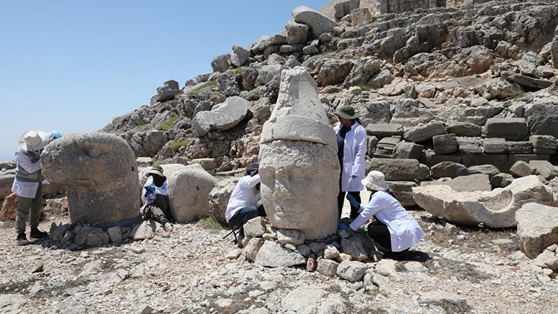 Doğu terasında yer alan Apollon heykelinin baş bölümündeki parça, geçmişte farklı gruplar tarafından yapıştırılarak ayrılmıştı. Ancak, bu parça şimdi kalıcı olarak bir araya getirilerek Nemrut’un en önemli eserlerinden biri yeniden eski bütünlüğüne kavuşturuldu.