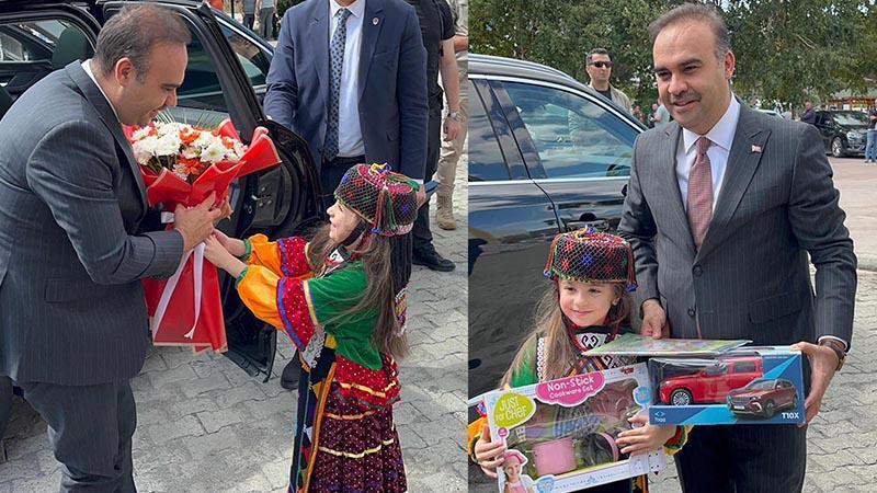 Sanayi ve Teknoloji Bakanı Mehmet Fatih Kacır, Ardahan’ı ziyaret ederek çeşitli etkinliklere ve temel atma törenine katıldı. Valilikte karşılandığı sırada Damal bebeği kıyafeti giymiş bir kız çocuğuna hediye veren Kacır, sonrasında Valilik şeref defterini imzaladı. Ardından Vali Hayrettin Çiçek’ten bilgi alan Kacır, AK Parti teşkilatı tarafından düzenlenen Türkiye Yüzyılı Buluşması’na katıldı.