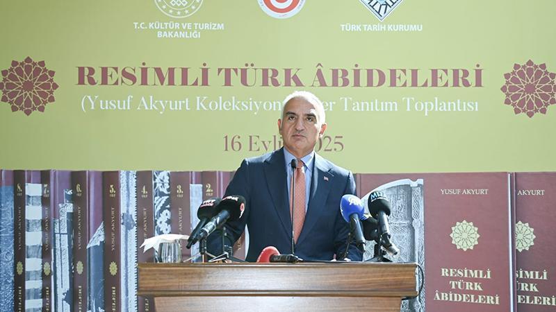 Bakan Ersoy, Atatürk Kültür, Dil ve Tarih Yüksek Kurumu’nda müzeci ve yazar Mehmet Yusuf Akyurt’un koleksiyonundan hazırlanan ‘Resimli Türk Abideleri’ adlı eserin tanıtımı sırasında konuştu. Etkinliğe Türk Tarih Kurumu Başkanı Yüksel Özgen ile çok sayıda davetli katıldı. Kültürel mirasa yaptığı katkılardan ötürü Akyurt’u onurlandıran Ersoy, “Osmanlı’nın son dönemlerinden Cumhuriyet’in ilk yıllarına kadar olan hayatında bilgi ve tecrübeyle katkı sağlamış olan Merhum Akyurt, adını tarihe altın harflerle kazımıştır. Bu sayede Konya Asar-ı Atika Müzesi kurulmuş, Mevlana Türbesi müze düzenine kavuşmuş ve Anadolu’nun çeşitli yerlerindeki sanat eserleri kayıt altına alınmıştır. Kısıtlı kaynaklarla hazırlanan ‘Resimli Türk Abideleri’, dönemin ilkleri arasında yer almış ve yol gösterici bir eser olmuştur. Zamanla bu eserin önemi artarak, Türk Tarih Kurumu tarafından yeniden yayına hazırlanmış ve önce dijital olarak erişime sunulmuş, ardından 9 cilt halinde basılarak kültürel yaşamımıza kazandırılmıştır. Böylelikle, yalnızca araştırmacılara değil, gençlerimize, öğrencilerimize ve sanat meraklılarımıza ilham veren bir kaynak olmuştur” dedi.