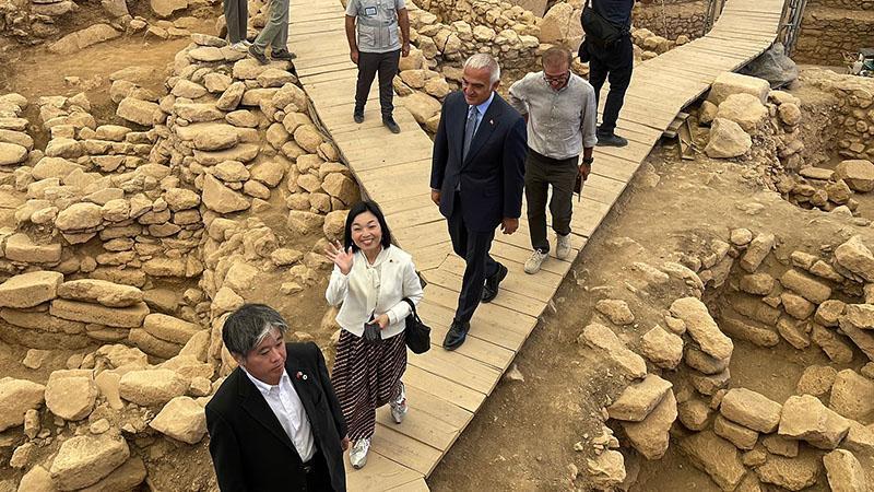 Kültür ve Turizm Bakanı Mehmet Nuri Ersoy, UNESCO tarafından Dünya Kültürel Mirası Listesi’ne alınan Göbeklitepe’yi Japonya Altes Prensesi Akiko Mikasa ile birlikte ziyaret etti. Ziyaret sırasında, kazı çalışmaları ile ilgili bilgi veren Kazı Başkanı Prof. Dr. Necmi Karul, Göbeklitepe’de önemli bir buluntu gün yüzüne çıkardıklarını duyurdu. Bakan Ersoy, bu buluntunun detaylarını paylaşarak, “B ile D yapıları arasındaki mekanda, bir oda duvarının içinde, yatay bir şekilde duvara monte edilmiş ve adak olarak konulduğu düşünülen bir insan heykeli bulundu. Bu keşif, Neolitik Çağ’ın ritüellerini ve inanç sistemlerini aydınlatacak çok değerli bir buluntu” açıklamasında bulundu.