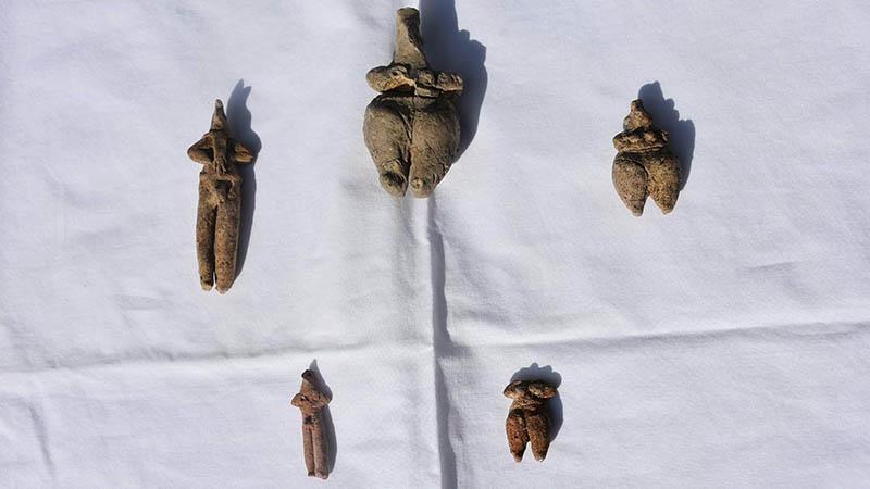 Prof. Dr. Çevik, bulunan figürinlerin 3’ünün kadın, 2’sinin ise erkek figürlü olduğunu ve boyutları arasında belirli farklılıklar gözlemlendiğini dile getirdi. Özellikle kadın figürünün göğüslerini tutar pozisyonda tasvirinin dikkat çekici olduğunu kaydetti. Boyutlardaki farklılıkların, farklı yaş gruplarına ait figürinleri işaret ettiğini düşünmekte. Ayrıca, topluluk içindeki sosyal konumlarının bireylerin yaşı ve cinsiyetine göre değişebileceğini belirtti. Figürinlerin boyutları 3 ile 10 santim arasında bulunmakta ve bu kadar küçük heykelciklere daha önce rastlanmamıştı. Antropomorfik figürinlerin böyle küçük boyutlularına ilk kez rastlandığı ifade ediliyor. Bu heykelciklerin, hanelerle ilişkilendirilen konutlarda bolluk, bereket ve geçiş ritüellerinde kullanıldığı öngörülüyor.” şeklinde açıklamalarda bulundu.
