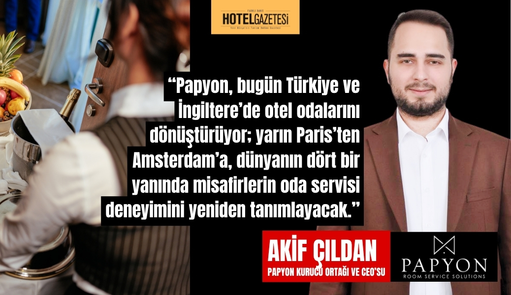Akif Çıldan: Papyon’un globalleşme vizyonu aslında çok net: Oda servisini yeniden tanımlayan bu modeli dünyanın turizm başkentlerine taşımak. Türkiye ve İngiltere’de edindiğimiz tecrübeyi şimdi Avrupa’ya, özellikle Amsterdam ve Paris gibi stratejik merkezlere yayıyoruz. Orta vadede hedefimiz, Papyon’u sadece bölgesel bir oyuncu değil, oteller için global ölçekte standart haline gelen bir oda servisi altyapısı yapmak. Uzun vadede ise, dünyanın neresinde olursa olsun bir misafir otele giriş yaptığında Papyon’un QR menüsüyle karşılaşmasını istiyoruz. Yani vizyonumuz, ‘otel odasında global bir deneyim markası’ yaratmak.