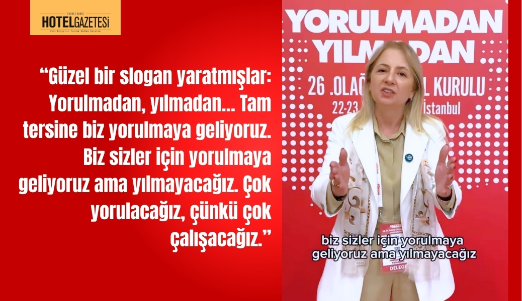 TÜRSAB Genel Kurulu’nun ilk günü geride kalırken, başkan adayı Aylin Özsavaş yaptığı güçlü açıklamayla dikkat çekti. Mevcut yönetimin “yorulmadan, yılmadan” sloganına gönderme yapan Özsavaş, “Biz sizler için yorulmaya geliyoruz; çok çalışacağız, çok hizmet edeceğiz” diyerek seçim öncesi en net mesajını verdi.