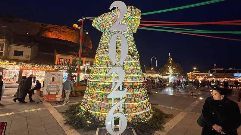 Ürgüp ilçesinin meydanında yer alan metal peribacası maketi, yerel kadınlar tarafından örülen motiflerle süslenerek dikkat çekiyor. Bu yaratıcı tasarım, yılbaşı atmosferine renk katarken, bölgenin kültürel zenginliğini de yansıtıyor.