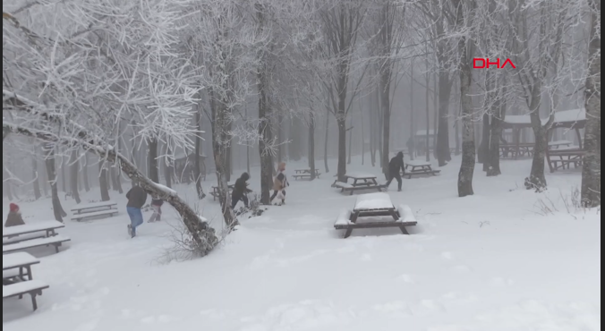 Meteoroloji Genel Müdürlüğü tarafından yapılan uyarılar sonrası, kış turizminin önemli merkezlerinden biri olan Kartepe’nin yüksek kesimlerinde yoğun kar yağışı etkili oldu. Kuzuyayla Tabiat Parkı’nda hava sıcaklığı eksi 6 dereceye kadar düştü ve yeşil alanlarda kar kalınlığı 10 santimetreye kadar ulaştı. Kocaeli Büyükşehir Belediyesi ve Kartepe Belediyesi ekipleri, ana yollar ve bağlantı yollarında ulaşımın aksamasını önlemek için tuzlama ve kar küreme çalışmaları gerçekleştirdi. Ayrıca, Kartepe İlçe Jandarma Komutanlığı ekipleri, zirveye çıkan güzergahlarda kış lastiği denetimi yaptı. Kar yağışının hafta sonu boyunca devam etmesi bekleniyor. (DHA)