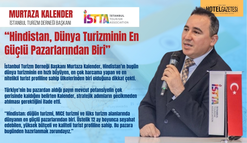 İstanbul Turizm Derneği Başkanı Murtaza Kalender, Hindistan’ın bugün dünya turizminin en hızlı büyüyen, en çok harcama yapan ve en nitelikli turist profiline sahip ülkelerinden biri olduğuna dikkat çekti. Türkiye’nin bu pazardan aldığı payın mevcut potansiyelin çok gerisinde kaldığını belirten Kalender, stratejik adımların gecikmeden atılması gerektiğini ifade etti.