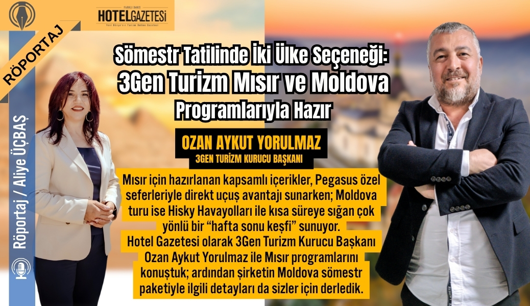 Hotel Gazetesi olarak 3Gen Turizm Kurucu Başkanı Ozan Aykut Yorulmaz ile Mısır programlarını konuştuk; ardından şirketin Moldova sömestr paketiyle ilgili detayları da sizler için derledik.