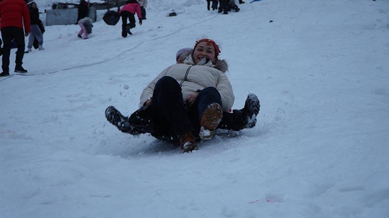 Rize’nin Çamlıhemşin ilçesinde yer alan Ayder Yaylası, bu yıl 18’incisi gerçekleştirilen geleneksel ‘Ayder Kardan Adam Kış Festivali’ ile dolup taştı. Festivalin ikinci gününde, katılımcılar keyifli anlar yaşarken, yaklaşık 75 metrelik doğal kayak pistinde poşetlerle kayarak kış eğlencesinin tadını çıkardı.