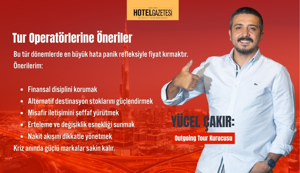 Bu röportajda, Outgoing Tour Kurucusu Yücel Çakır, bölgedeki son gelişmelerin turizm talebine olası yansımalarını ve Türk turizm sektörü açısından oluşturabileceği fırsat ve riskleri değerlendirmektedir.