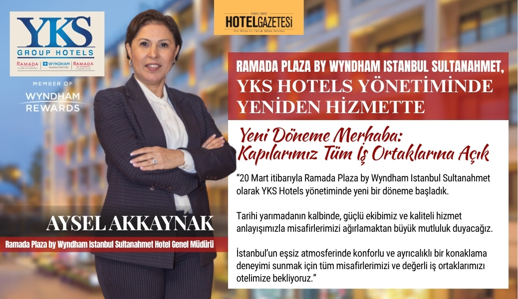 “20 Mart itibarıyla Ramada Plaza by Wyndham Istanbul Sultanahmet olarak YKS Hotels yönetiminde yeni bir döneme başladık.