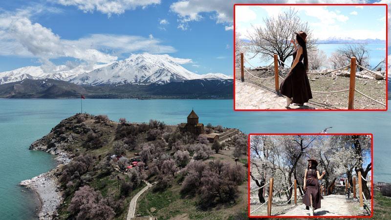 Van’ın Gevaş ilçesinde yer alan Akdamar Adası, her yıl binlerce yerli ve yabancı turisti kendine çekmeye devam ediyor. İlkbaharın gelişiyle birlikte badem ağaçlarının çiçek açması, adayı benzersiz bir görünüme büründürüyor. Yurt içinden ve yurt dışından gelen ziyaretçiler, Van Gölü’nün derin mavi sularıyla çevrili karla kaplı dağların eşsiz manzarasını izleme fırsatı buluyor.