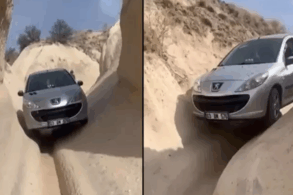 Kapadokya’da Navigasyon Fiaskosu: Sürücü Kayalara Daldı!