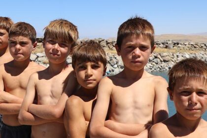 Van Gölü’ne girerek serinleyen çocukların saçlarının sarıya döndüğü görüntüler, sosyal medyada dikkat…