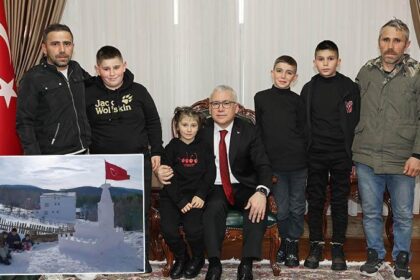 KIZ KULESİNİ YERİNDE GÖRECEKLER Vali Şimşek, bir sohbet sırasında kardan yapılan Kız…